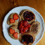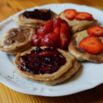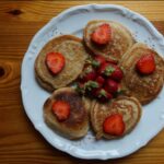 Placuszki świetnie smakują ze świeżymi owocami, jogurtem, masłem orzechowym, czekoladą, dżemem.