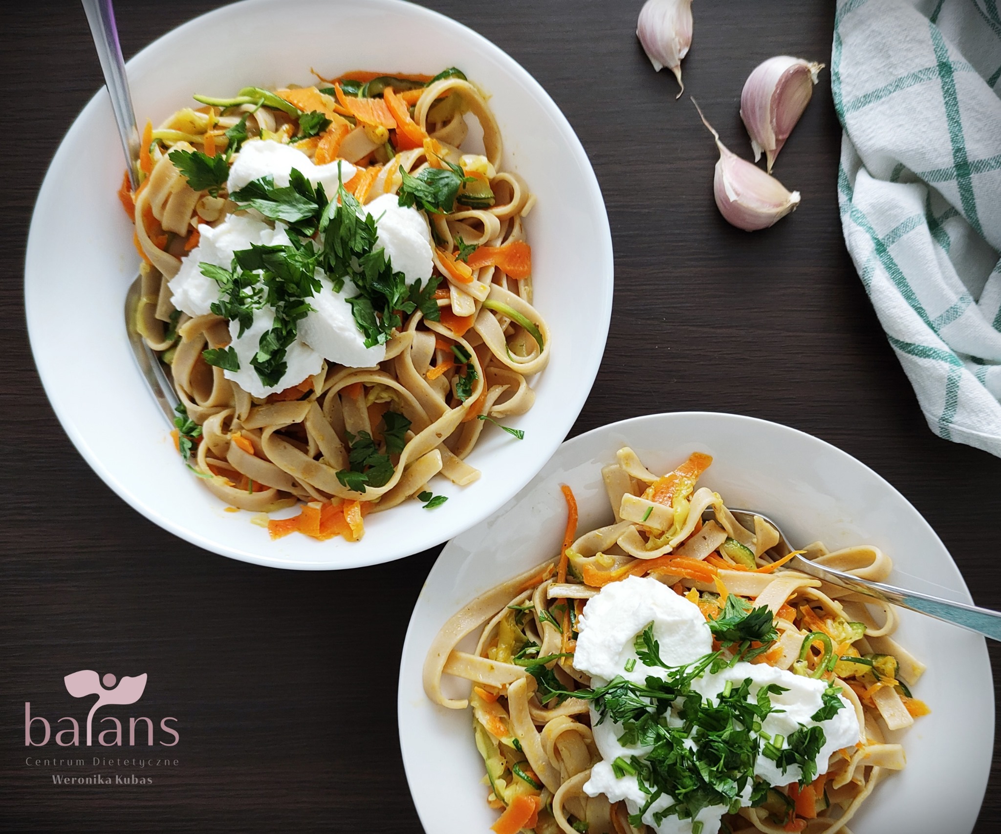 Makaron cukiniowo-marchewkowy z ricottą i pietruszką