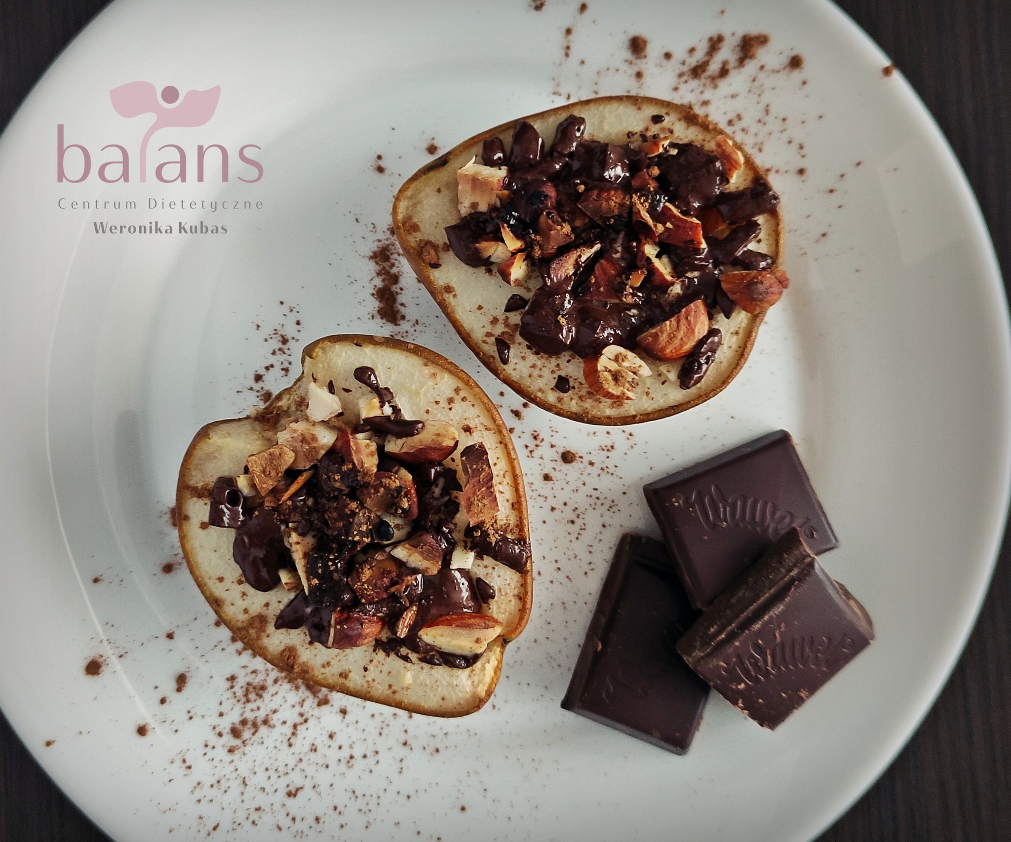 Gruszka pieczona z czekoladą i orzechami