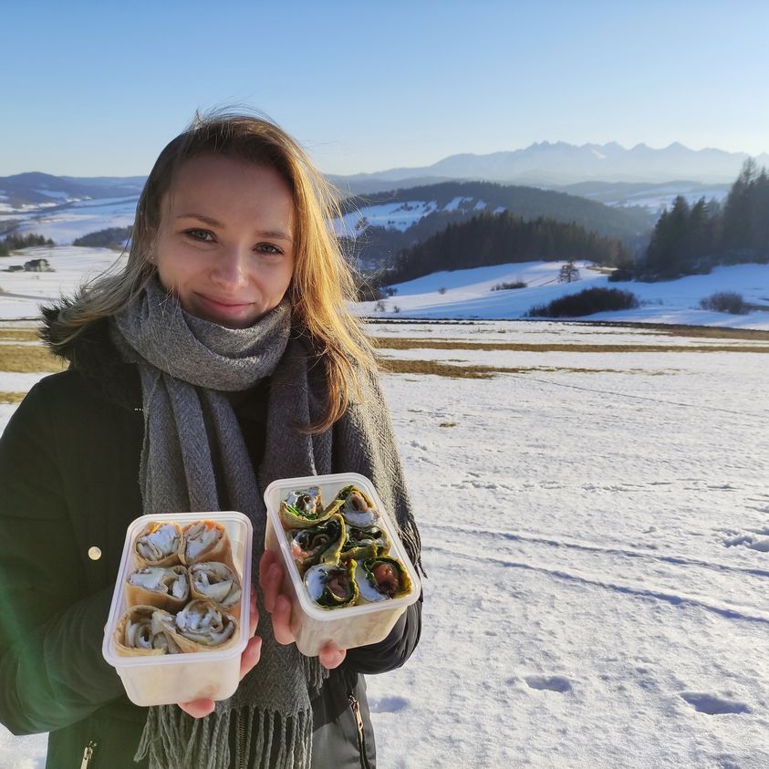 Korzystając z tego, że udało mi się wyrwać w weekend na chwilę w góry, chciałabym podrzucić pomysł na posiłek do pracy lub na wycieczkę – zamiast kanapki 😉 To też dobry sposób na to, by przygotowując naleśniki na obiad, zrobić od razu dodatkową porcję do pracy:)